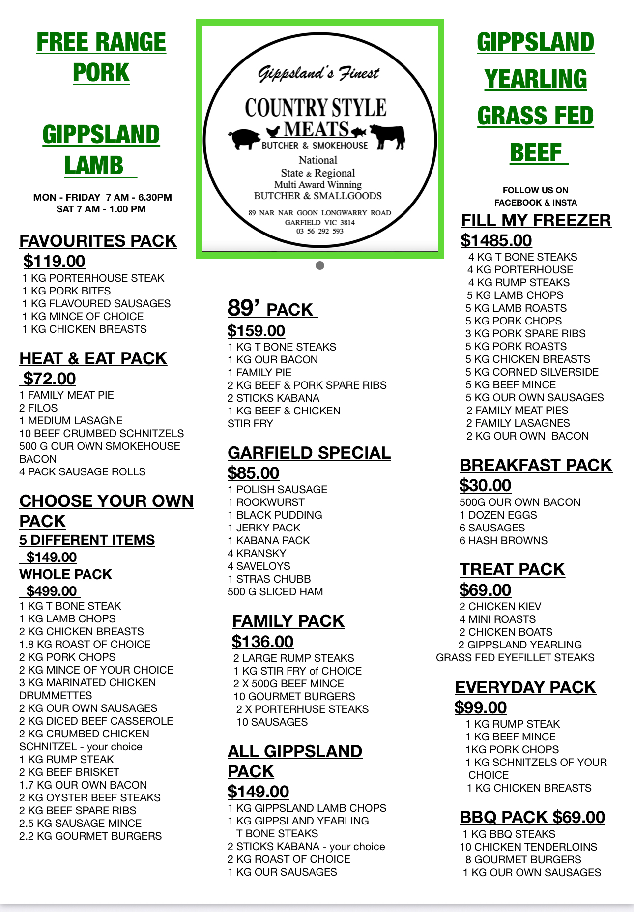 *We have a variety of Bulk meats packs*Farmers stock, cut packed & labelled to your requirements*Smokehouse award winning products